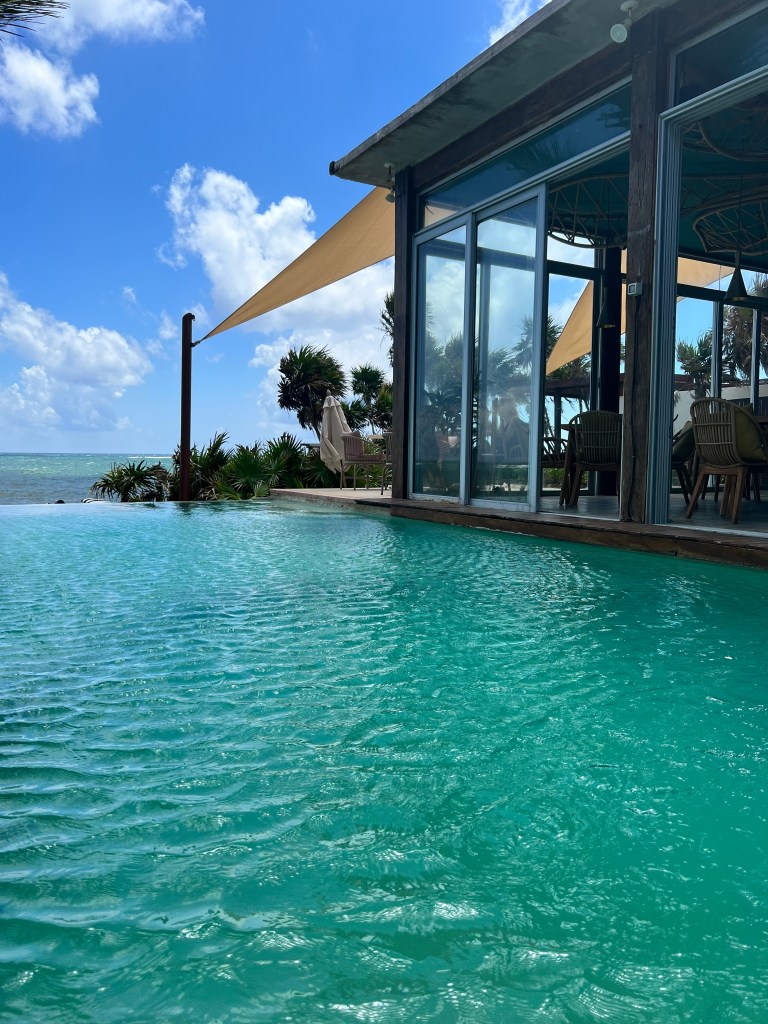 Be Tulum is perfect for couples and small friend groups who want an intimate, calm stay. It’s social but definitely not a party hotel. The vibe feels elevated and relaxed. Our room had a private rooftop pool, which was easily the highlight of our stay there (besides the excellent room service). We spent hours up there, even staying up until 4am one night just talking under the sky. The rooms are dark, but in a calming, moody way that feels serene rather than claustrophobic.