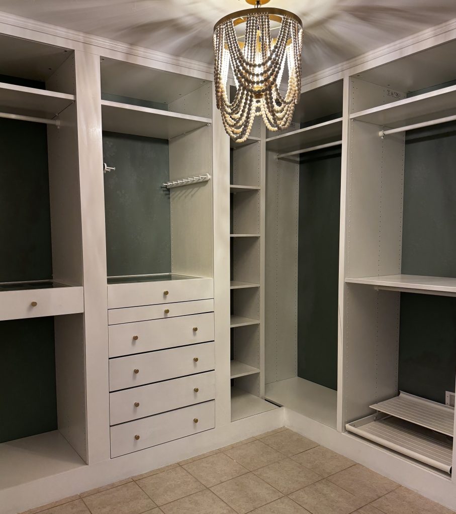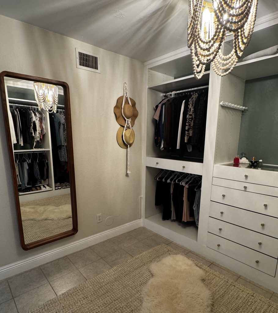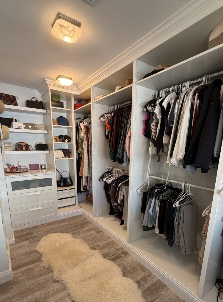 I’m not a handy girl. At all. But I figured it out (with a little help from my dad), and made mistakes so you don’t have to. In the end I ended up with a built-in closet that looks far more “designer” than the price tag suggests. If you want a boujee-on-a-budget closet you’ve come to the right place! In this post I’ll be showing you two different closets. One of them is from my condo, and the second is one I did at my house. Both were done slightly differently so regardless of how you move forward you should be