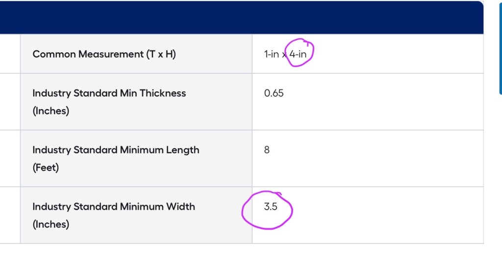 Always check the “actual” measurements listed on the trim. A board labeled 1×4 is almost never actually 1 inch by 4 inches. It’s typically closer to ¾” x 3.5”. If you plan based on the name instead of the actual dimensions, your spacing can end up slightly off and even half an inch matters when you’re trying to make everything look seamless. Double-check before you buy, and definitely before you cut.